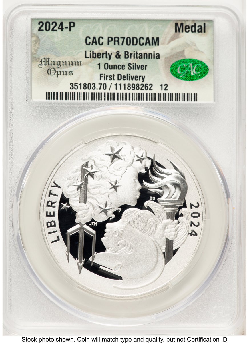 70 2024-P Modern Bullion Coins (2024-P Proof Silver Medal Liberty & Britannia 1 oz First Delivery Magnum Opus) (2024-P) – CACG