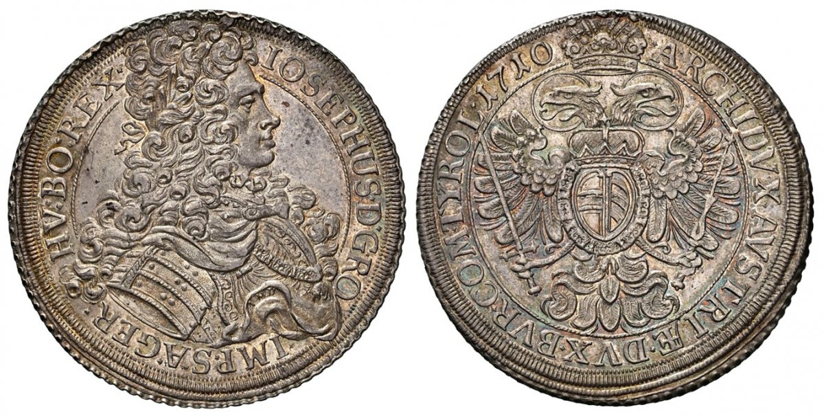 63 World Coins (“AUSTRIA. Joseph I. 1710/00 IMH AR Thaler. NGC MS63. Vienna. 44mm. 28.78gm. IOSEPHUS · D: G: RO IMP · S · A · GER · HV: BO: REX ·. Armored bust right without inner circle / ARCHIDVX · AUSTRIÆ · DVX · BVR · COM · TYROL ·. Without inner circle. KM 1505; Da) – NGC