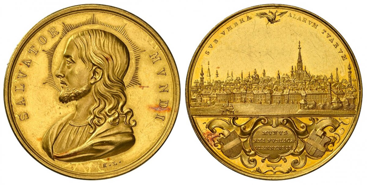 62 World Coins (“AUSTRIA. Vienna. (1843-56) AV Medallic 6 Ducats. NGC PR62 Cameo. By Konrad Lange. Vienna. Edge: (A). 34mm. 20.87gm. SALVATOR MVNDI. Nimbate half-length bust of Christ left / SVB VMBRA ALARVM TVARVM. City view of Vienna, small crowned double-headed eagle) – NGC